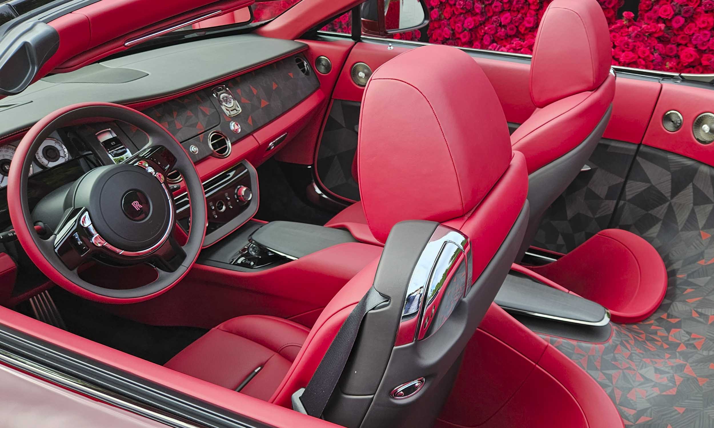 Inside the rolls royce la rose noire droptail, craftsmanship defines every surface.